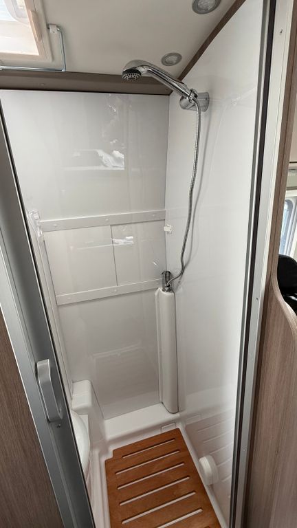 - Duschausstattung (Brausekopf ausziehbar, Duschvorhang, Führungsschiene, Brausehater)